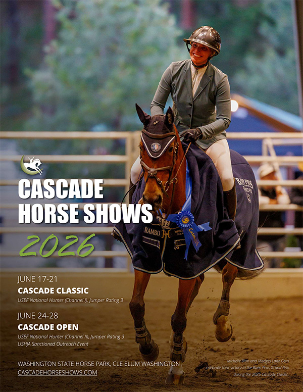 Arrivals: You may arrive as early as two days prior to the start of competition. (For example, if competition begins Wednesday with a Tuesday warm-up day, you can move in on Monday starting at 10 am.) You may arrive later if you like. For approval to arrive earlier than two days prior, contact us at office@cascadehorseshows.com. Early arrivals incur a per-night fee for stalls and for RV spaces, as applies.